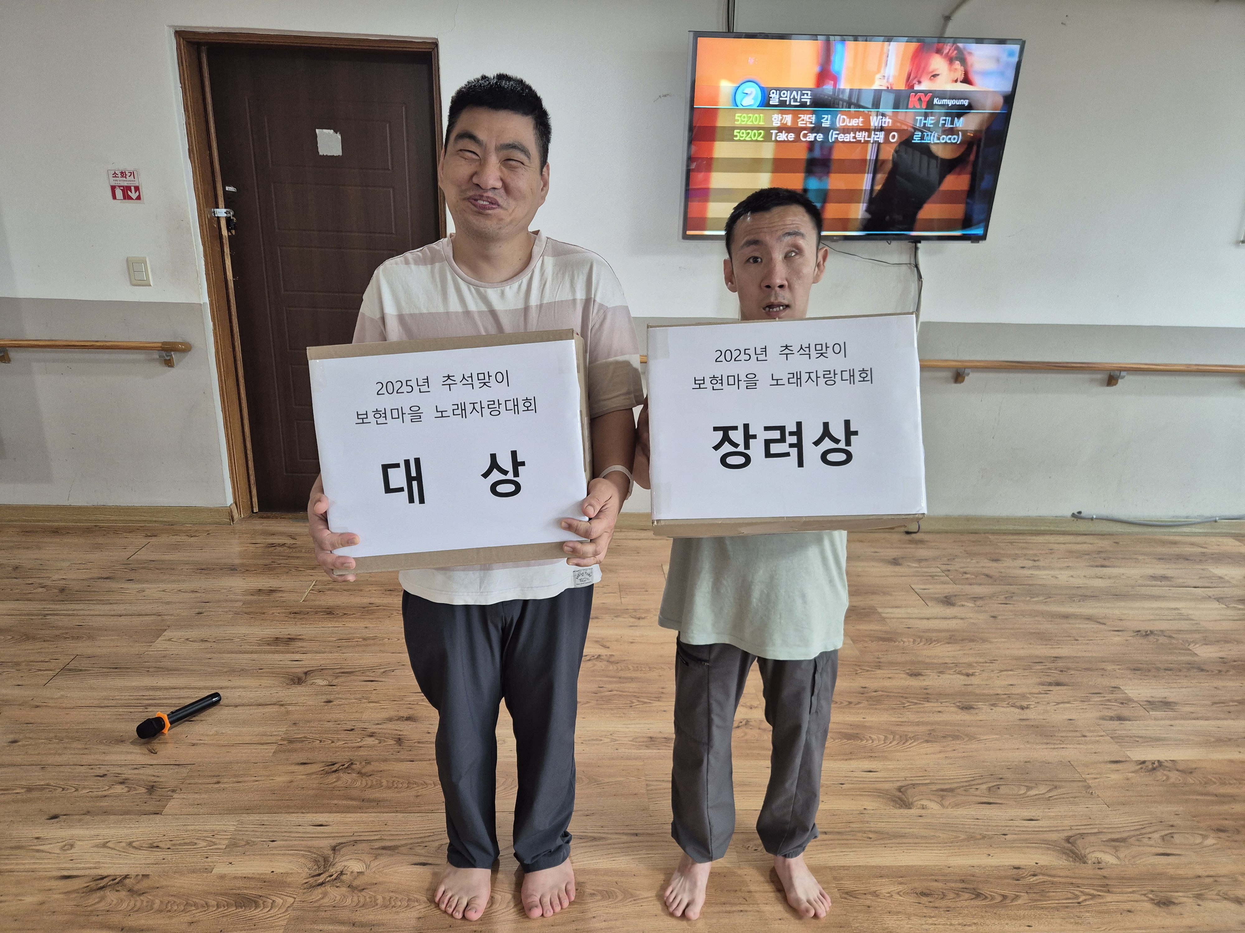며칠 전부터 노래를 잘 부르고 싶다고 연습하신 천병기 거주인이 대상을 받아 크게 기뻐하였습니다.