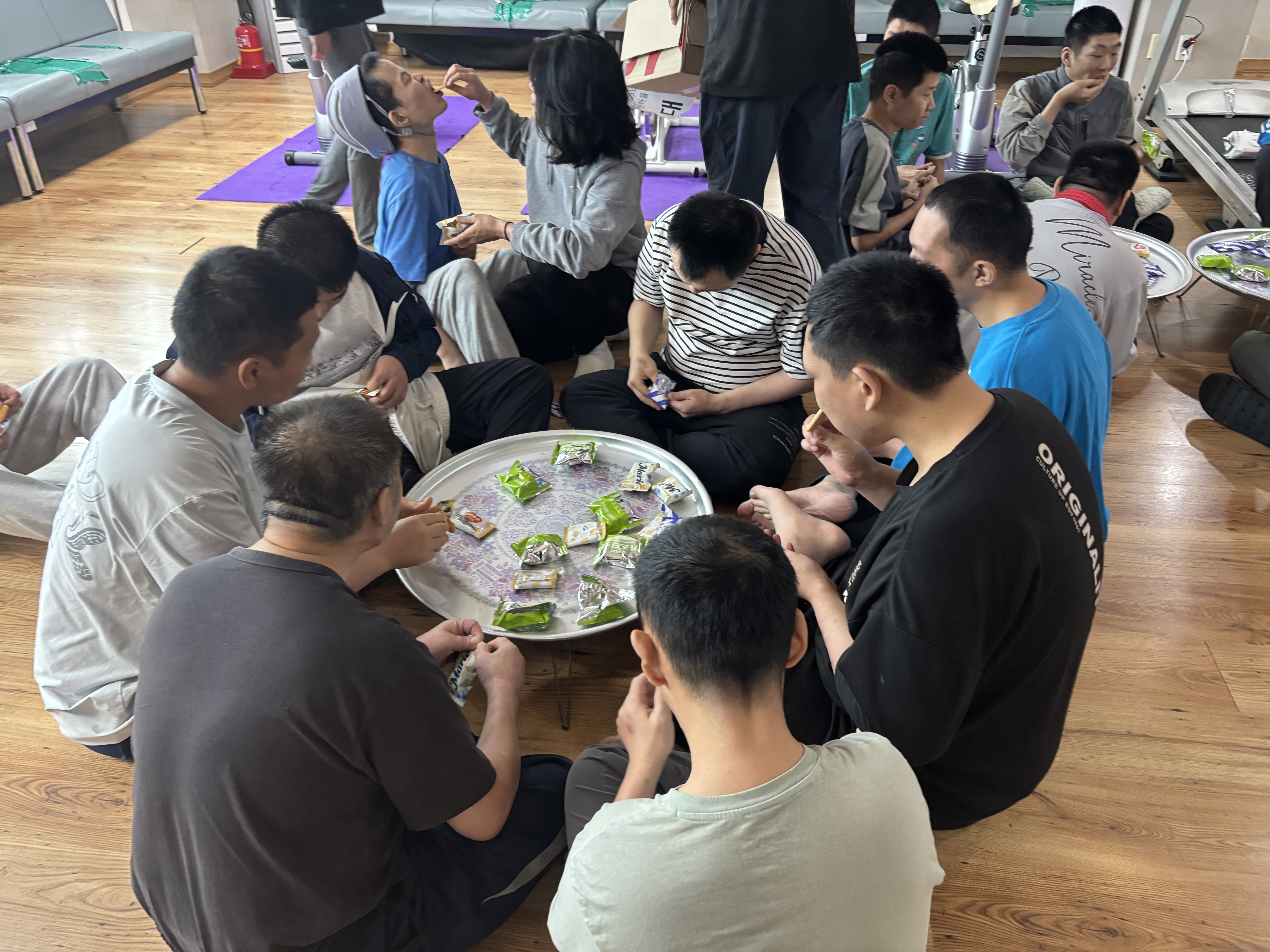 상품으로 받은 과자를 다른 거주인들과 나눠 드시며 프로그램을 마무리해 보았습니다.