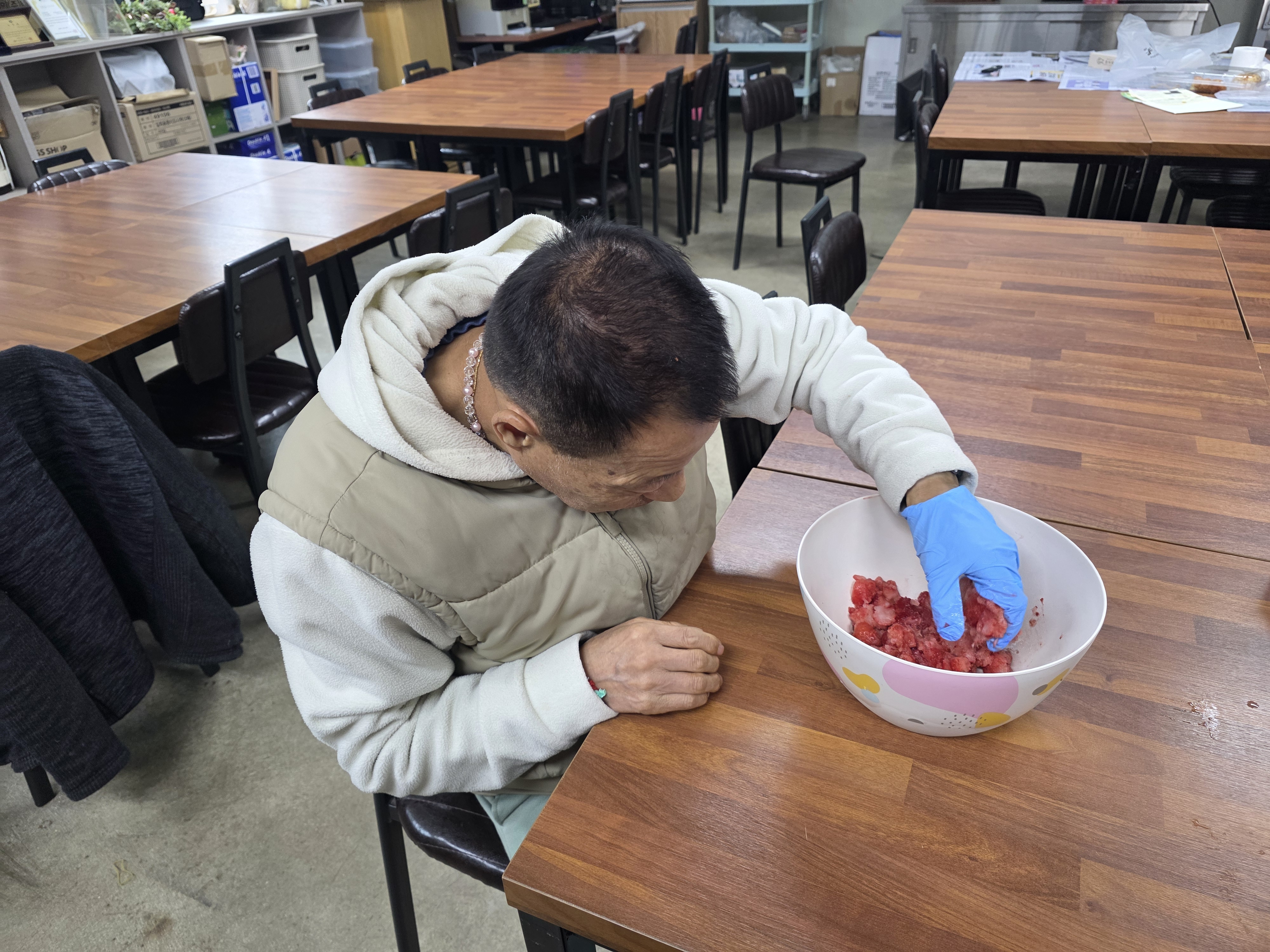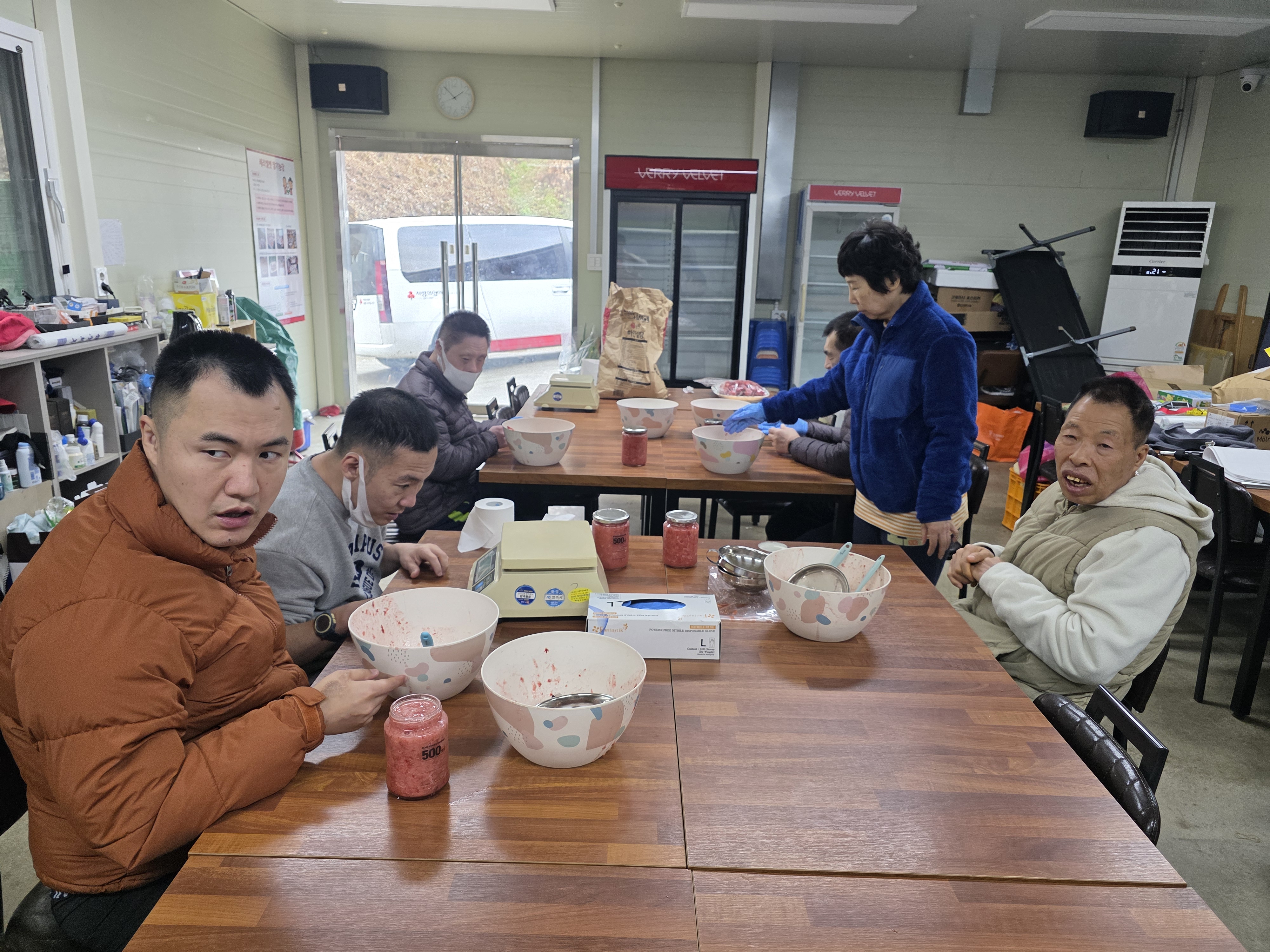11월 체험프로그램(딸기농장 체험) 페이지 정보 작성자 손민수 작성일25-11-25 15:24 조회64회 댓글0건 본문 금일 체험프로그램으로 영주의 딸기농장을 방문했습니다. 아직 시기가 빨라 딸기가 열리지는 않았지만 하우스에 들어가 자라고 있는 딸기들과 딸기 꽃을 보며 딸기 꽃에서 열매 까지 열리는 과정을 이해하는 시간을 가지고 실습실에서 직접 거주인들과 함께 딸기 청을 만드는 체험을 진행했습니다. 댓글목록 등록된 댓글이 없습니다. 이전글 다음글 목록